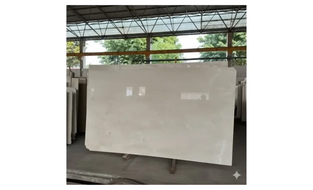 Marmer dengan warna cream lembut dan tekstur halus, cocok untuk lantai, dinding, dan area interior yang mengutamakan kesan hangat serta mewah.